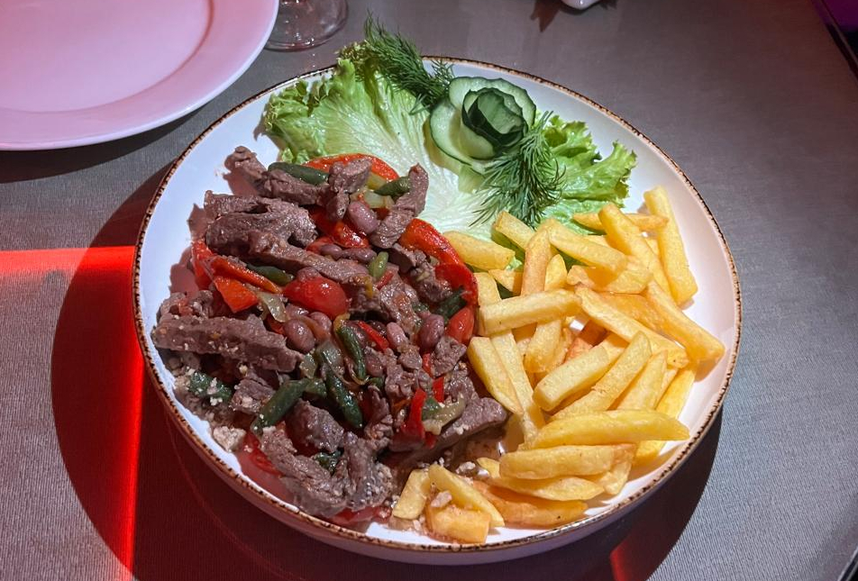 вырезка, перец цв., помидор, красн. фасоль, стручк.я фасоль, перец чили, картофель фри